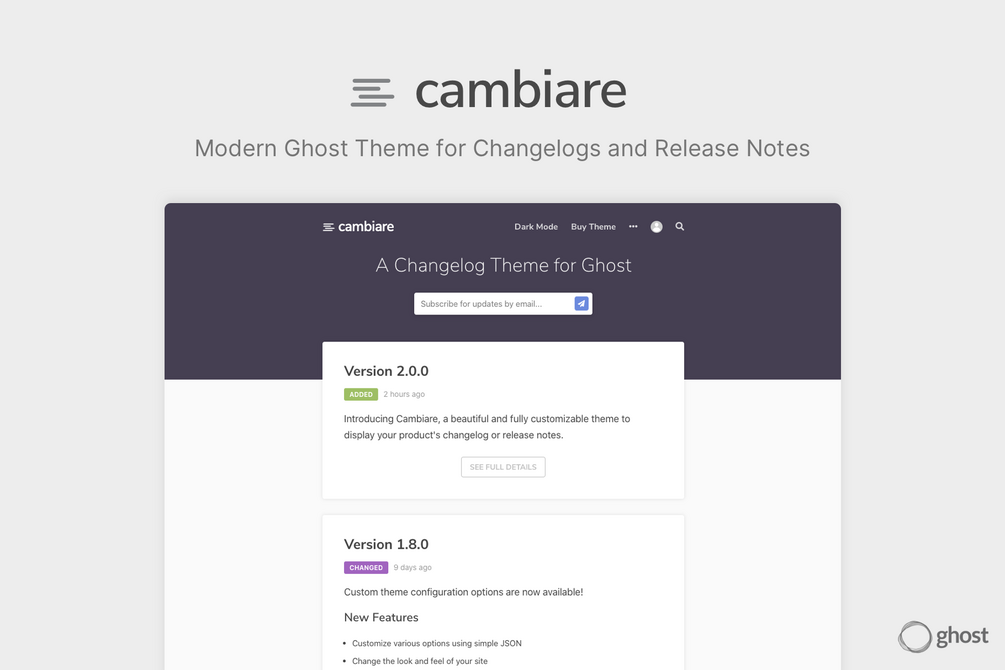 Cambiare - A Changelog and Release Notes Theme for Ghost